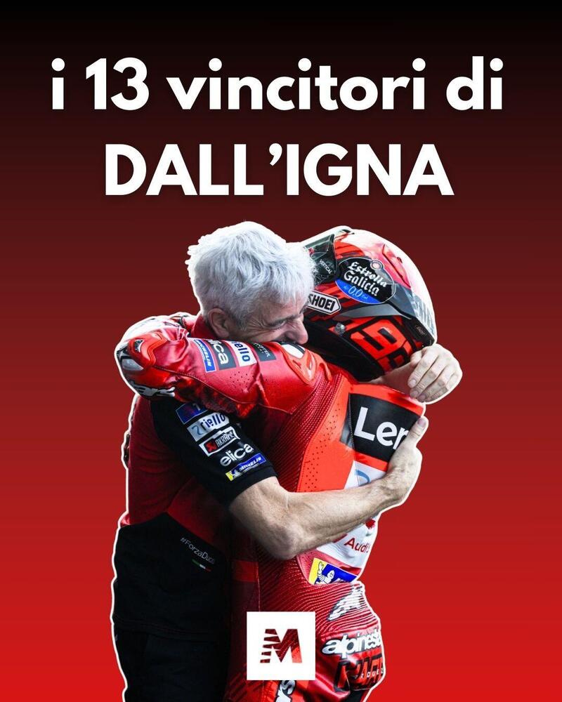 I GP vinti dalle sue moto sono stati 80, dal primo del 2016 di Andrea Iannone all’ultimo di Alex Marquez, a Jerez 2025. Sono stati 13 i piloti che hanno vinto GP con Ducati, e per ognuno di loro Dall’Igna ha detto qualcosa, eccoli tutti.