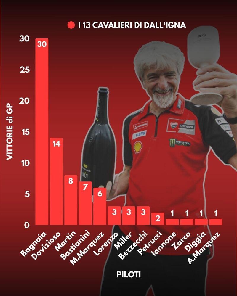 Di questi 13 piloti sono due i campioni del mondo Ducati: Bagnaia e Martin.