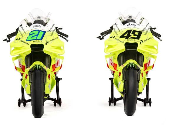 Ore 13,02: Mantenuto il color fluo. Sono stati aggiunti dei dettagli che richiamano fortemente i simboli di Valentino Rossi: presenti il sole e la luna e il numero 46 accanto al numero dei piloti. Franco Morbidelli ha commentato: "Vedere il mio numero circondato dal fluo per la prima volta è stata un'emozione"