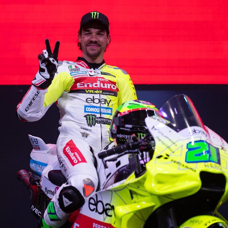 "La nuova livrea a me piace tanto perché dall'anno scorso abbiamo lavorato insieme ad Aldo Drudi, che è sempre stato il mio designer, lo è anche ora, ha fatto tutti i miei caschi. Mi trovo molto bene con lui e secondo me è molto bravo a fare le moto. La moto dell'anno scorso, con questo giallo fluo e bianco è stata molto particolare e si è sempre vista tanto. Quest'anno abbiamo continuato con lo stesso concept, ma abbiamo fatto delle modifiche: ci sarà il sole e la luna, ci sarà il 46 sulla moto, quindi la rendono ancora più speciale"