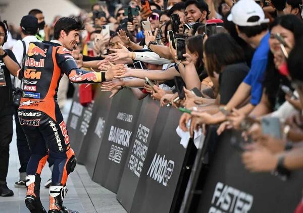 Le 22 moto schierata, i 19 - ahinoi - piloti schierati. La presentazione della MotoGP è andata in scena nella domenica di Bangkok, davanti al grande entusiasmo degli appassionati asiatici.