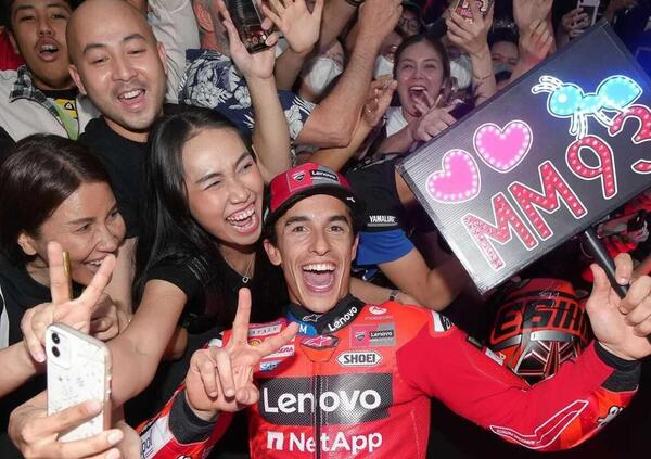 Ad aprire la giornata è stata una foto di gruppo davanti al tempio di marmo. Le MotoGP sono arrivate al tempio a bordo dei tuk-tuk, mezzi a tre ruote che caratterizzano il traffico di Bangkok.