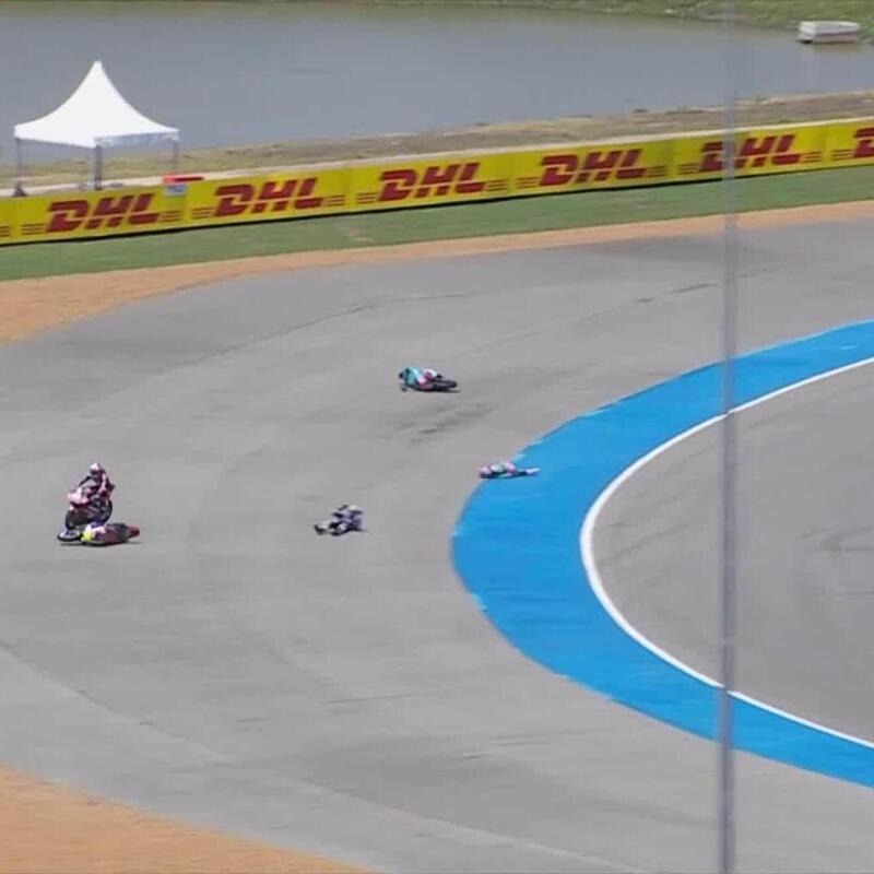 Successivamente, la gara, già condizionata dal primo stop, ha vissuto un altro momento complicato alla seconda ripartenza con la caduta di Sergio Garcia e Luca Lunetta: Garcia ha impattato sulla moto di Lunetta in un contatto che ha reso necessario un nuovo intervento dei soccorsi. Lunetta è apparso inizialmente seduto a bordo pista senza casco, mentre Garcia è parso più sofferente.