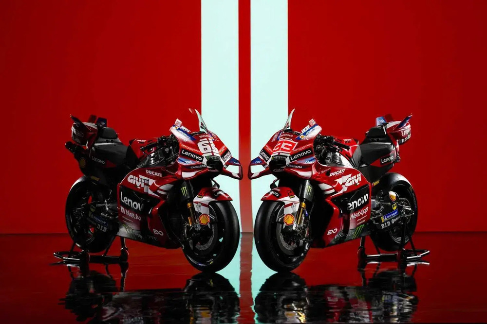 A Madonna di Campiglio, la coppia Bagnaia-Marquez ha svelato la nuova Desmosedici per la nuova stagione. Per celebrare il Centenario di Ducati, la livrea 2026 abbandona il look dell'anno scorso: debutta il “Rosso Centenario”, una diversa tonalità di rosso arricchita da linee bianche lungo la carena.