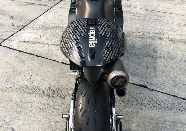 Sulla carena in carbonio verniciata di nero opaco oltre al brand e agli sponsor anche decine di nomi: sono quelli delle donne di Aprilia Racing ai quali la Casa di Noale ha voluto fare omaggio.