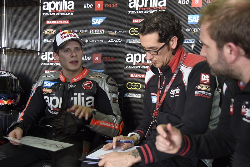 L’Aprilia era partita bene nelle FP1 , con il 12esimo tempo di Stefan Bradl a 1”911 dal primo e il 14esimo di Alvaro Bautista (a 2”036). Pressappoco lo stesso distacco accusato da Alvaro nel pomeriggio (2”059), con Stefan che è invece retrocesso al 19esimo posto a 2”463. In ogni caso, un inizio incoraggiante, da confermare domani, anche se sembra che la RS-GP fatichi a migliorare come fanno gli altri, facendo naturalmente le debite proporzioni.