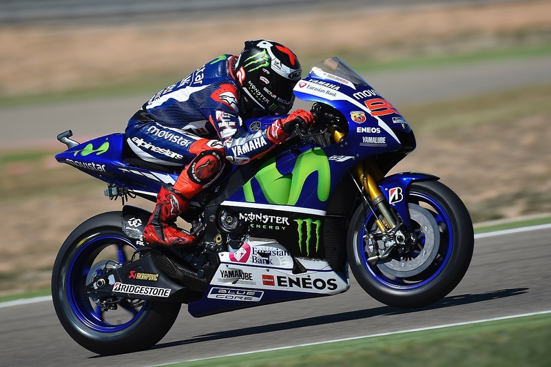 Jorge Lorenzo (Movistar Yamaha MotoGP) chiude in testa la prima sessione di libere del Gran Premio Movistar de Aragon 2015 lasciando gli avversari Marc Marquez (Repsol Honda) e Valentino Rossi a mezzo secondo.