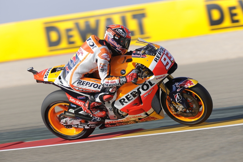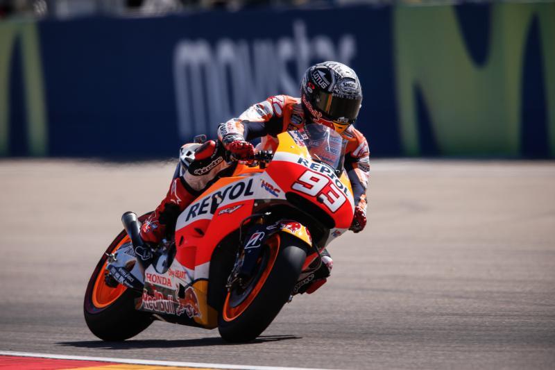 Marquez è il più veloce anche nel warm up ad Aragon. Alle sue spalle i connazionali Lorenzo e Pol Espargaro. Quarto tempo per Rossi che precede Pedrosa. Risale in settima posizione Dovizioso; in decima invece Iannone, dopo il terzo tempo di ieri in qualifica.