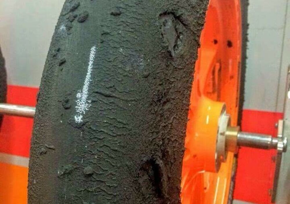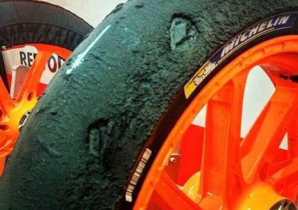 Anche Dani Pedrosa si lamenta duramente. Le foto della sua gomma anteriore parlano chiaramente…
