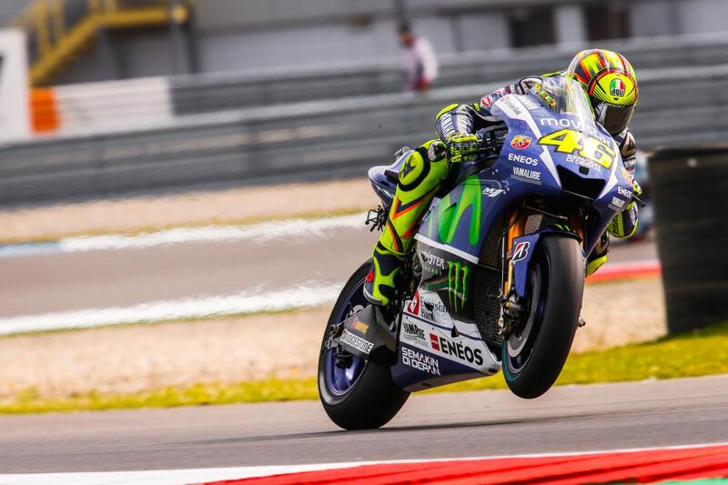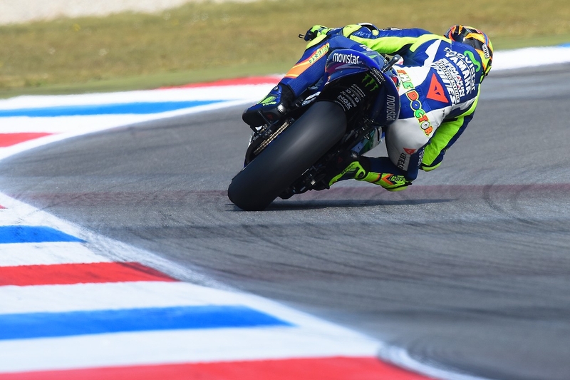 Dietro alle due Honda, ecco la Yamaha di Valentino Rossi, che aveva chiuso al comando le FP1. Tre considerazioni sulle libere di Rossi: 1) in entrambi i turni è stato davanti al compagno di squadra; 2) è stato velocissimo fin dai primi giri; 3) è quello più costante nel passo. Insomma, tre buone notizie per il campione italiano, galvanizzato da una messa a punto di base decisamente migliore che nei GP precedenti e da un nuovo telaio, promosso anche da Jorge Lorenzo. Entrambi i piloti sono partiti – come previsto - nelle FP1 con una moto con il telaio utilizzato fino a Barcellona e con una con quello evoluzione, portato al debutto, con successo, nei test di settimana scorsa ad Aragon. Nelle FP2, Lorenzo ha utilizzato entrambe le moto con l’ultima versione della ciclistica, mentre Rossi ha mantenuto al box una M1 con il telaio “vecchio”, usando però soltanto l’altra moto. La scelta, quindi, è ormai fatta: il nuovo telaio dovrebbe migliorare l’entrata in curva e facilitare il lavoro delle gomme. I risultati per il momento sono confortanti e Rossi è stato molto efficace sulla distanza, specie con le gomme nuove medie montate nel finale, dopo aver provato a lungo anche quella più dura posteriore.