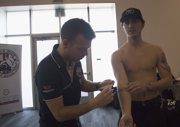 Questo è stato dunque un weekend intenso anche per i nostri fisioterapisti che hanno riscontrato nella maggior parte dei piloti un forte affaticamento del tricipite brachiale, soprattutto quello sinistro (viste le numerose curve a sinistra). Soltanto alcuni piloti hanno riferito lo stesso problema sul tricipite destro, probabilmente dovuto allo stile di guida, alle caratteristiche della moto e alle modalità di compensazione.