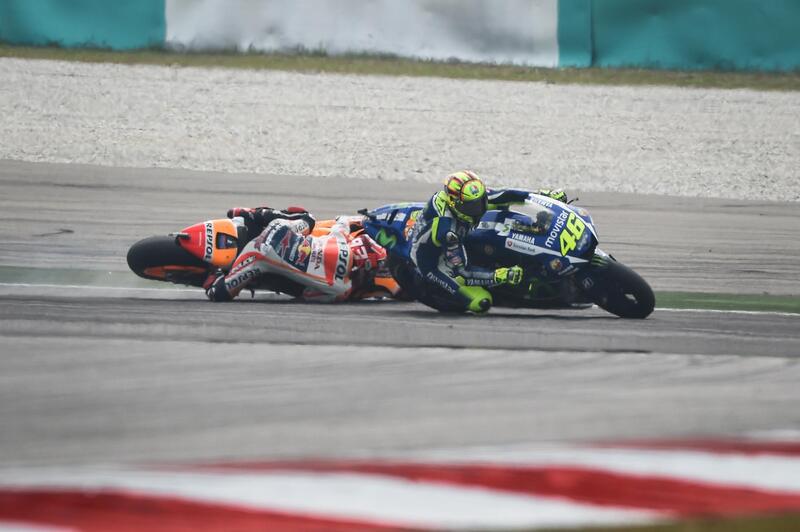 Ultimo giro: Marquez recupera quasi mezzo secondo e all’ultima chicane tenta il tutto per tutto azzardando il sorpasso su Rossi, che appena sente il contatto, rialza la moto e trionfa tagliando la curva, mentre Marc è secondo. «Da Valentino ho imparato che si può vincere facendo motocross» sibila lo spagnolo livido di rabbia, mentre la direzione gara decide di non intervenire. Un errore dalle conseguenze terrificanti, perché poi si arriverà a una sorta di regolamento dei conti tra i due: la “race direction” avrebbe dovuto sanzionare uno dei due o addirittura entrambi. In quel momento, Marquez giura vendetta all’ex amico: si può dire che questo è un episodio fondamentale della stagione 2015.