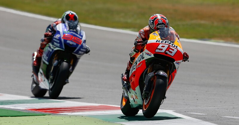 Al Mugello, ci si entusiasma per la sfida di altissimo livello tra Marquez e Lorenzo, che si superano sette, otto volte in 23 giri e arrivano al traguardo separati solo di un decimo. Anche questo è un episodio molto importante: se Jorge fosse riuscito a vincere, ipotesi tutt’altro che utopistica visto l’andamento del GP, avrebbe acquistato una grande forza, mettendo per primo fine all’egemonia del rivale.