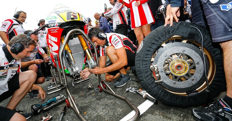 Anche al Sachsenring, piove, non piove, la pista è appena umida. Tutti si schierano con le rain, con il solo Stefan Bradl, tra i piloti di vertice, che opta all’ultimo momento per le slick. La scelta è vincente, ma il team non ha il tempo per cambiare l’assetto da bagnato con quello da asciutto: la RC213V è inguidabile, Stefan perde progressivamente un sacco di secondi. Con l’assetto giusto, avrebbe certamente vinto: non sarebbe cambiato nulla per il campionato, sarebbe cambiato molto per il pilota tedesco.