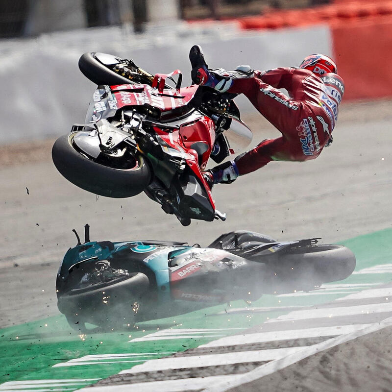 Dopo la grande paura, vista la tremenda “botta” tirata saltando sulla moto di Quartararo, Andrea è stato in ospedale dove la TAC ha escluso fratture.
