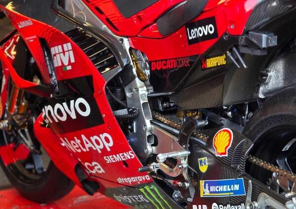 L’immagine di chiusura è quella della vista laterale del prototipo della moto 2025. Si nota come la nuova carenatura sia arrivata a coprire quasi completamente il travone laterale del telaio al fine di proteggere meglio il pilota dal calore sviluppato dal motore.