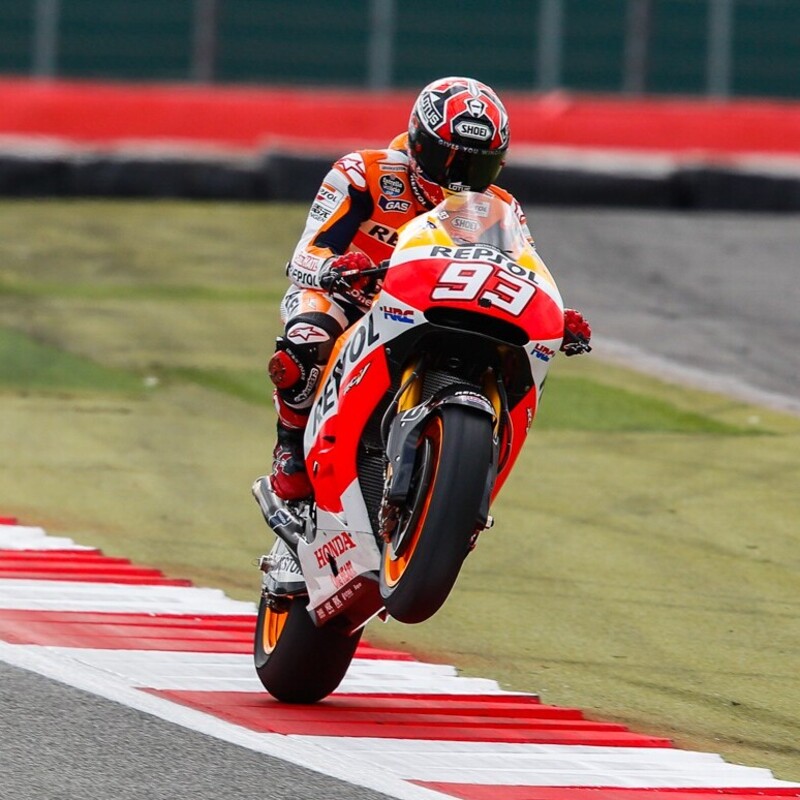 Marquez sempre in testa anche nel terzo turno di prove a Silverstone. Dovizioso staccato di 0.034, terzo Pedrosa a due decimi. Quarto e quinto tempo per le Yamaha ufficiali di Rossi e Lorenzo.