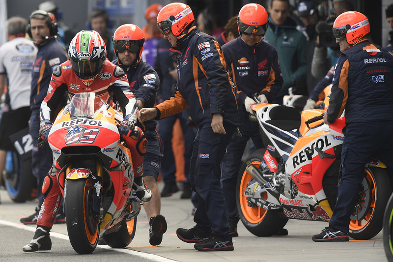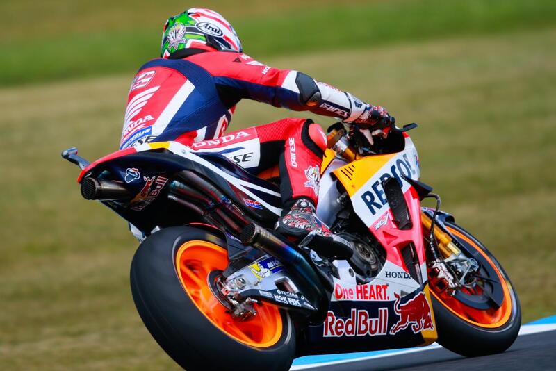 Dal 2017 il regolamento imporrà ai meccanici ai box di effettuare il cambio moto durante il “flag to flag” indossando abbigliamento specifico, tra cui il casco. A Phillip Island la HRC ha fatto una prova durante le FP4, effettuando un cambio moto come se fossimo già nella prossima stagione. Al di là del colore dei caschi, completamente sbagliato rispetto a quello dello sponsor Honda, è parso un po’ strano vedere i meccanici vestiti in quel modo. E’ sempre così quando c’è una novità: l’anno prossimo, quando tutti indosseranno i caschi (ma solo durante il cambio moto in pit lane, non lo devono tenere anche dentro al box, come invece avviene in F.1) nessuno ci farà più caso.