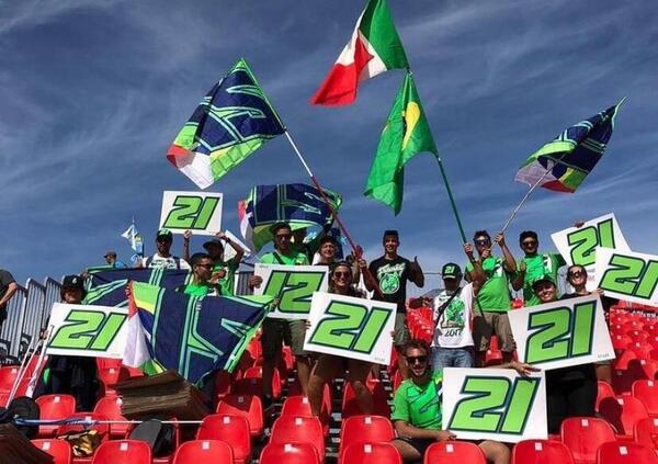 Un’emozione immensa. E chi se la dimentica quella giornata? Avevamo allestito lo stand a Tavullia, a due passi dal quartier generale del fanclub di Vale e per spostare il materiale c’eravamo fatti prestare il furgone con cui Franco muove le sue moto per gli allenamenti. Dopo la bandiera a scacchi venne a festeggiare con noi anche la mamma, Cristina, insieme a suo zio e altri della sua famiglia. Alla fine un fanclub è questo: senso di comunità e appartenenza. Lo scopo è stare insieme e condividere, quindi quel giorno è stato certamente il più importante da quando esistiamo. Paradossalmente la gioia più grande per noi è coincisa anche con la sofferenza più grande, perché sarebbe stato stupendo poter essere lì, nella nostra tribuna, con tutti i suoi tifosi vestiti del suo verde e i nostri gadget. Ma, scaramanzia a parte, Franco ci darà modo di rifarci quando tutto questo sarà passato.