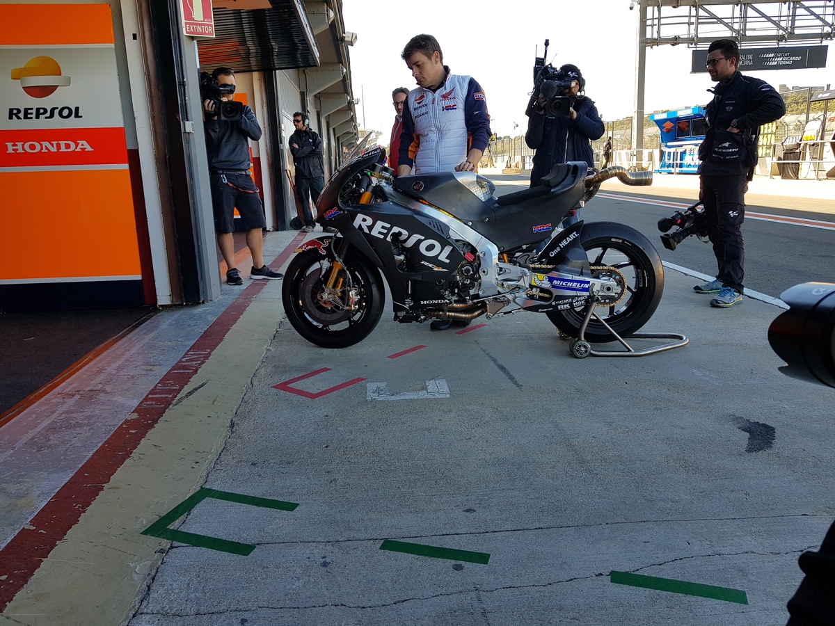 Marquez: “Sono partito con una grande motivazione, ma dopo due giri quasi cado… In realtà, l’approccio ai test deve essere differente: bisogna avere pazienza per capire bene i punti positivi e negativi del nuovo prototipo, raccogliere tante informazioni per seguire la strada giusta. La moto nuova è differente nel telaio, nel motore e negli scarichi: nei test non conta essere i più veloci, ma è più importante individuare la giusta strada da seguire. Ancora è troppo presto per dire dove e come il prototipo va meglio: aspettiamo domani”.