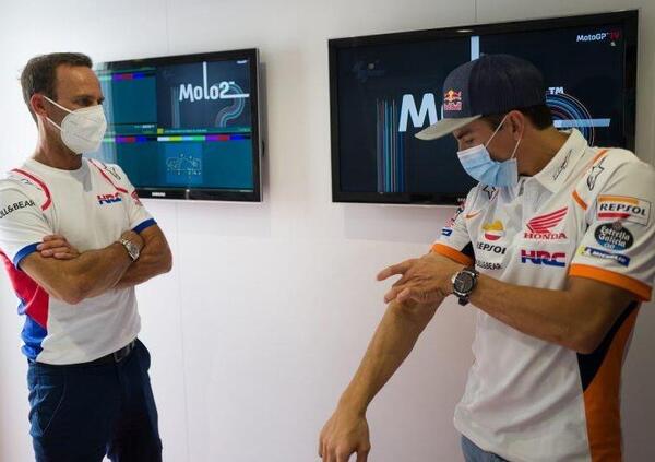 Marc Márquez ha commentato così il suo ritorno in pista, anche se come ospite nel suo stesso box, dopo due mesi lontano dalle corse e dall’aria di un Gran Premio. Al Montemelò, il Cabroncito ha scelto la giornata del giovedì per farsi vedere, annunciando, però, che non sarà presente nel fine settimana. “Troppa sofferenza - ha scherzato -. C'è una parte di me che vuole tornare subito, soprattutto dopo essermi seduto sulla moto, ma ora è il momento di avere pazienza. È stato bello venire qui per parlare non solo con il team, ma anche con la Honda, mentre iniziamo a fare un piano per il 2021. Vorrei correre qui nella mia gara di casa, ma dovrò accontentarmi di guardarla in TV".
