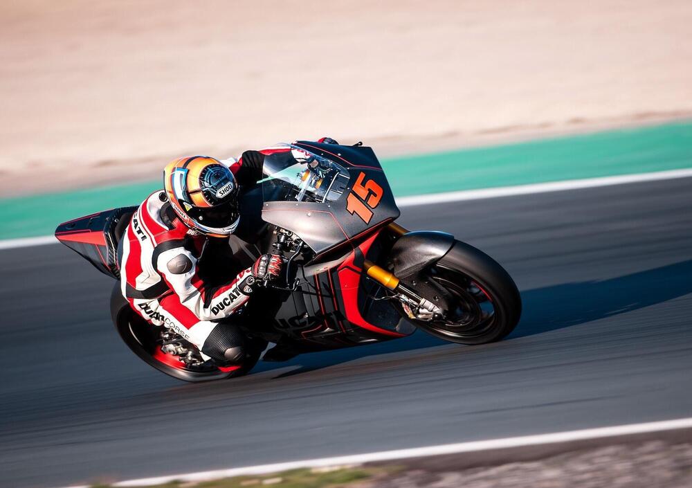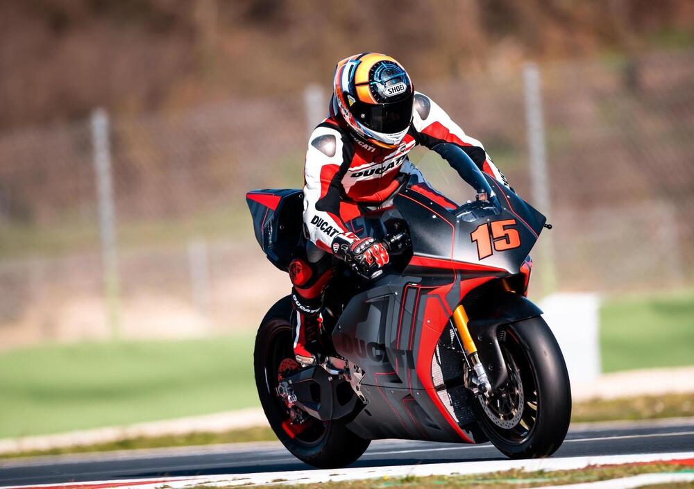 In sella però, al posto del tester titolare Michele Pirro, c'è Alex De Angelis, ex pilota del motomondiale MotoGP compresa (da ricordare un bellissimo secondo posto a Indianapolis nel 2009 con la Honda del team Gresini), che nel 2019 ha corso nella prima edizione della categoria elettrica e che, data la sua esperienza in merito, si quindi aggiunge ufficialmente al team di sviluppo.