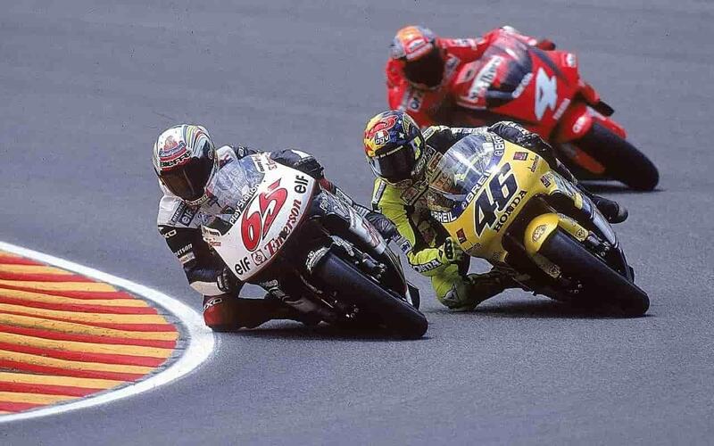 Per Loris fu una delle più sofferte ma gratificanti vittorie in carriera e invece per il Dottore ci fu anche la replica dell’anno dopo, quando cadde con la sua NSR verniciata in stile hawaiano. Da allora smise di lavorare sulle grafiche speciali delle moto, concentrandosi scaramanticamente sui caschi, sempre con l’aiuto di Drudi; e il lavoro più apprezzato resta quello del suo volto spaventatissimo, alla staccata della San Donato.