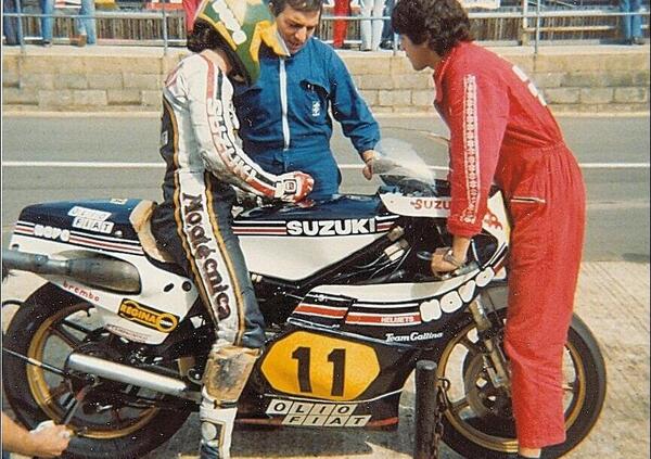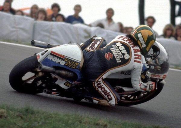 Ma nel gruppo c’è anche Virginio Ferrari, vice campione del mondo 1979 e dieci volte sul podio, e figura pure Graziano Rossi: il babbo di Valentino ha portato due volte la Suzuki 500 sul podio, con il secondo posto ad Assen e il terzo a Misano nell’80.