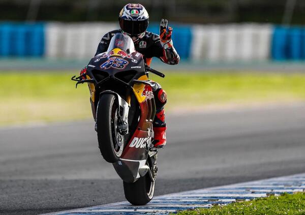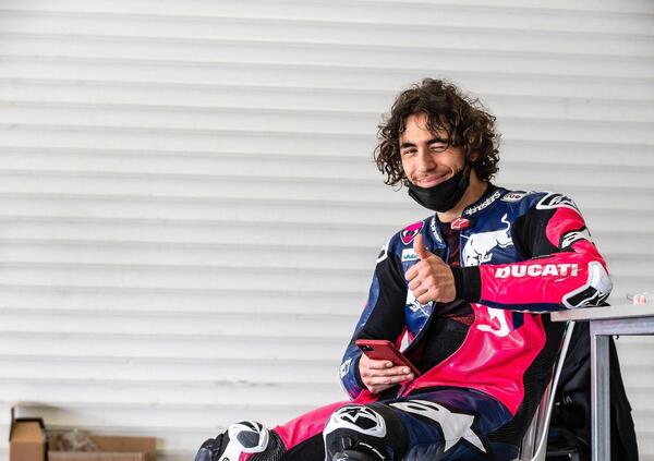 “È stato molto bello” ha fatto eco Bagnaia. “Abbiamo avuto un po’ di sfortuna perché a questo punto avremmo potuto fare già due giorni di test e invece abbiamo girato solo un pomeriggio, in cui comunque siamo riusciti a fare ottanta giri, quindi moltissimo. Sono molto contento, perché mi mancavano queste sensazioni e la V4 è comunque una moto molto vicina alla MotoGP - avevo veramente voglia di andare in moto.”