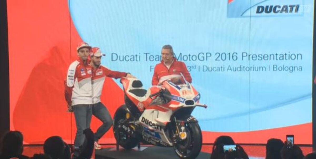Iniziata la presentazione, Claudio Dominicali sul palco: lo spirito Ducati