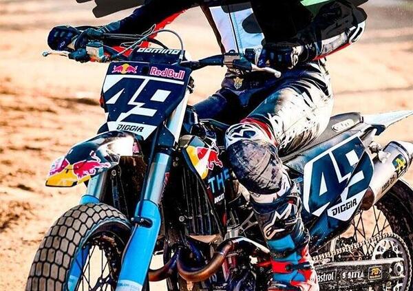 Le tre moto sono, rispettivamente, una pitbike motard e due Yamaha YZ da cross, una delle quali allestita in versione dirt-track - quella con cui il Diggia ha corso la 100 km dei campioni lo scorso novembre. Pitbike e cross sono personalizzate con il numero 21, quello usato da Fabio finora, mentre la YZ preparata dirt-track reca invece sul portanumero il 49, quello scelto per correre in MotoGP dove il ventuno è già utilizzato da Franco Morbidelli.