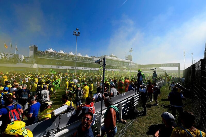 Lorenzo era incredibilmente caduto anche nel 2017, quando era al comando della corsa al primo anno con la Ducati. Edizione bagnata solo la domenica. Strepitoso fu Márquez: a terra nel warm up (era la sua ventesima caduta della stagione), in gara riuscì a riprendere un ottimo Petrucci, mentre il Dovi chiuse terzo a quasi dodici secondi. Andrea era in testa al campionato e Marc qui lo raggiunse nel punteggio e nel numero delle vittorie: quattro a quattro dopo la tredicesima gara. Valentino, lo ricorderete, disertò il GP di San Marino per i postumi del famoso incidente con la moto da enduro.