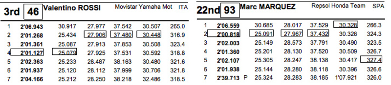 Ne esce male Marc Marquez, la cui condotta di gara è stata quanto meno discutibile e provocatoria, esattamente come lo era stata quella di Phillip Island: lo confermano i dati. Sia chiaro: l’ho detto per il GP d’Australia, l’ho detto nel commento a caldo, lo ribadisco adesso: Marc, settimana scorsa come oggi, non ha fatto nessuna scorrettezza, ma il suo comportamento è quanto meno antisportivo. Brutto per un campione come lui.