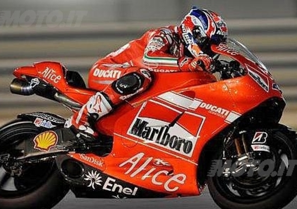 Casey Stoner su Ducati ha preceduto nel secondo giorno di test il campione del mondo Valentino Rossi (Yamaha). Sono andati bene, con ottimi riscontri cronometrici, anche Colin Edwards e Andrea Dovizioso.