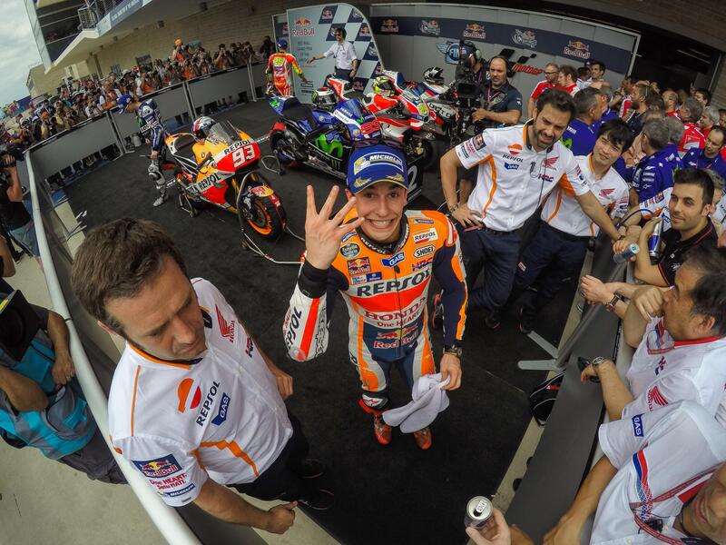 Risponde Marquez: «Proprio perché sapevo che la gomma sarebbe calata, ho spinto più che potevo finché l’anteriore me lo permetteva, per poi controllare il margine accumulato nel finale».