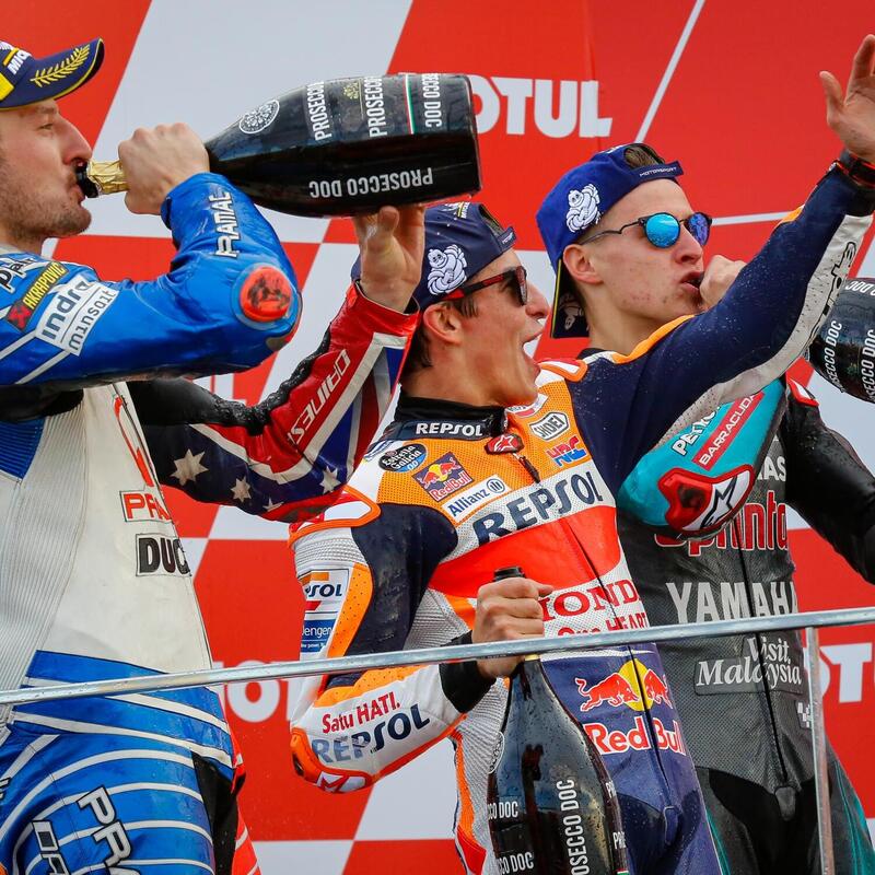 Márquez 1’31”116 (4); Miller 1’31”304 (6); Quartararò 1’31”306 (4); Rins 1’31”350 (8); Morbidelli 1’31”351 (4); Dovizioso 1’31”361 (7); Petrucci 1’31”556 (7); Viñales 1’31”557 (8); Mir 1’31”557 (12); Rossi 1’31”608.