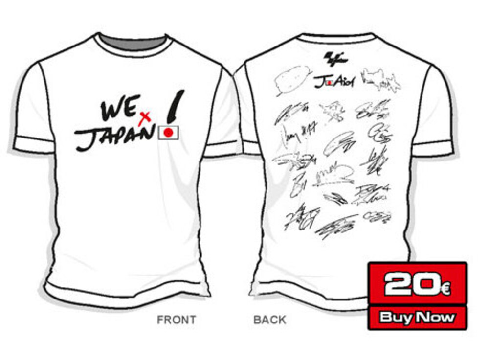 La MotoGP non è rimasta indifferente alla tragedia Giapponese e dopo comunicati e pubbliche dimostrazioni di solidarietà passa ai fatti. Tutti i 17 piloti hanno autografato una maglietta con la scritta "We are for Japan". La t-shirt sarà in vendita nei circuiti dove correrà la MotoGP o acquistabile sul sito ufficiale alla pagina http://weforjapan.motogp.com. Il prezzo è di 20 euro. L'incasso sarà consegnato a un'organizzazione umanitaria in occasione del Gran Premio del Giappone che si terrà in ottobre.