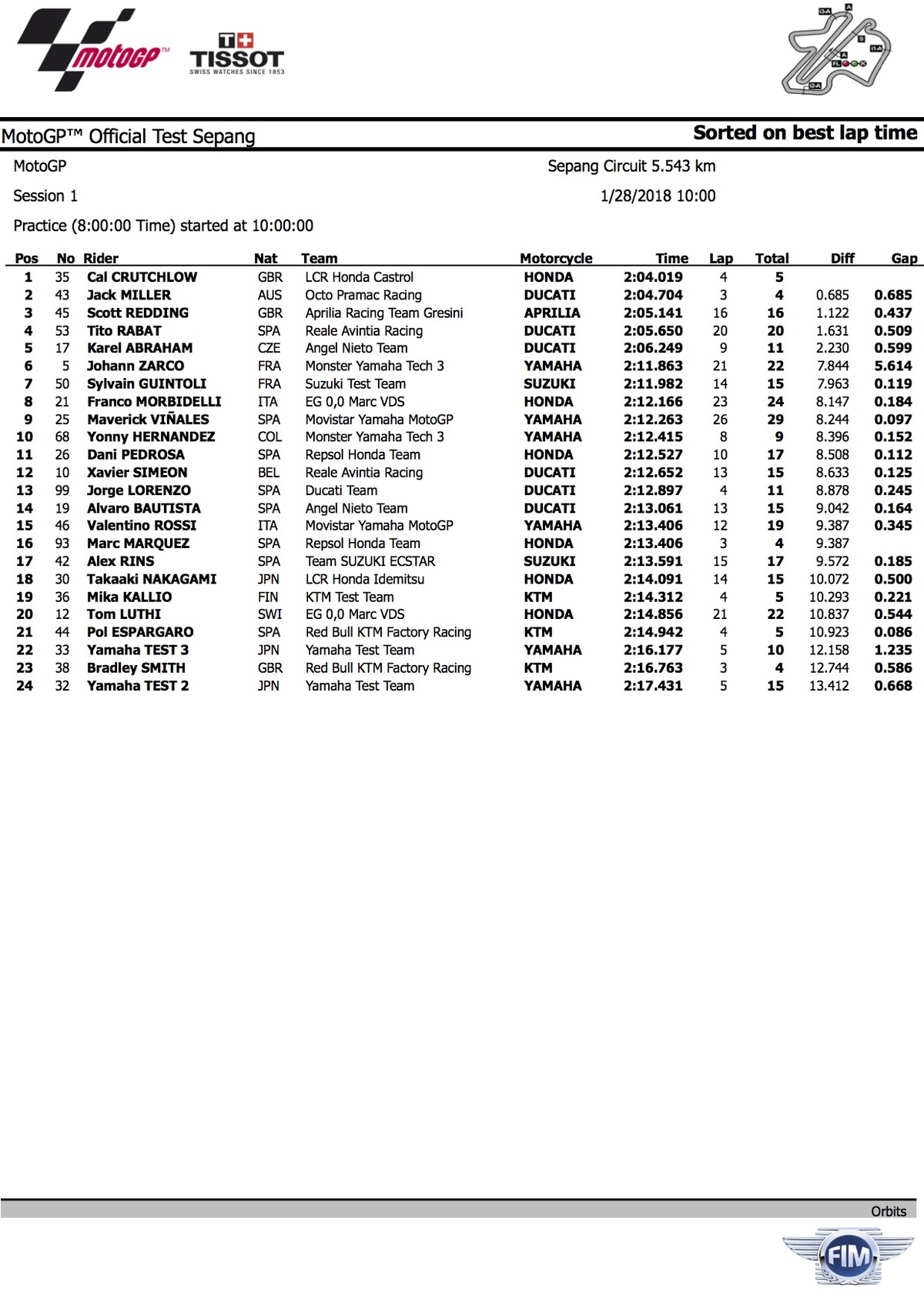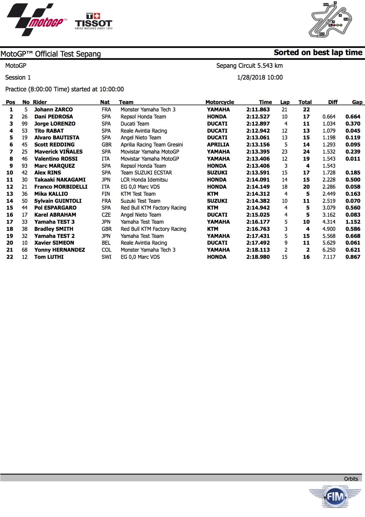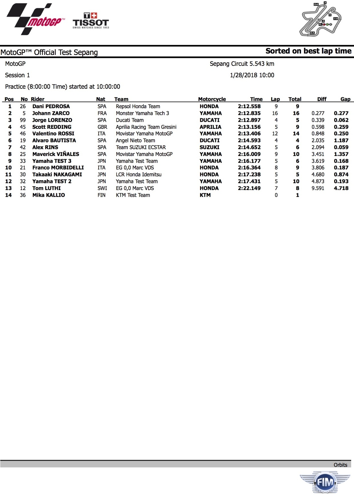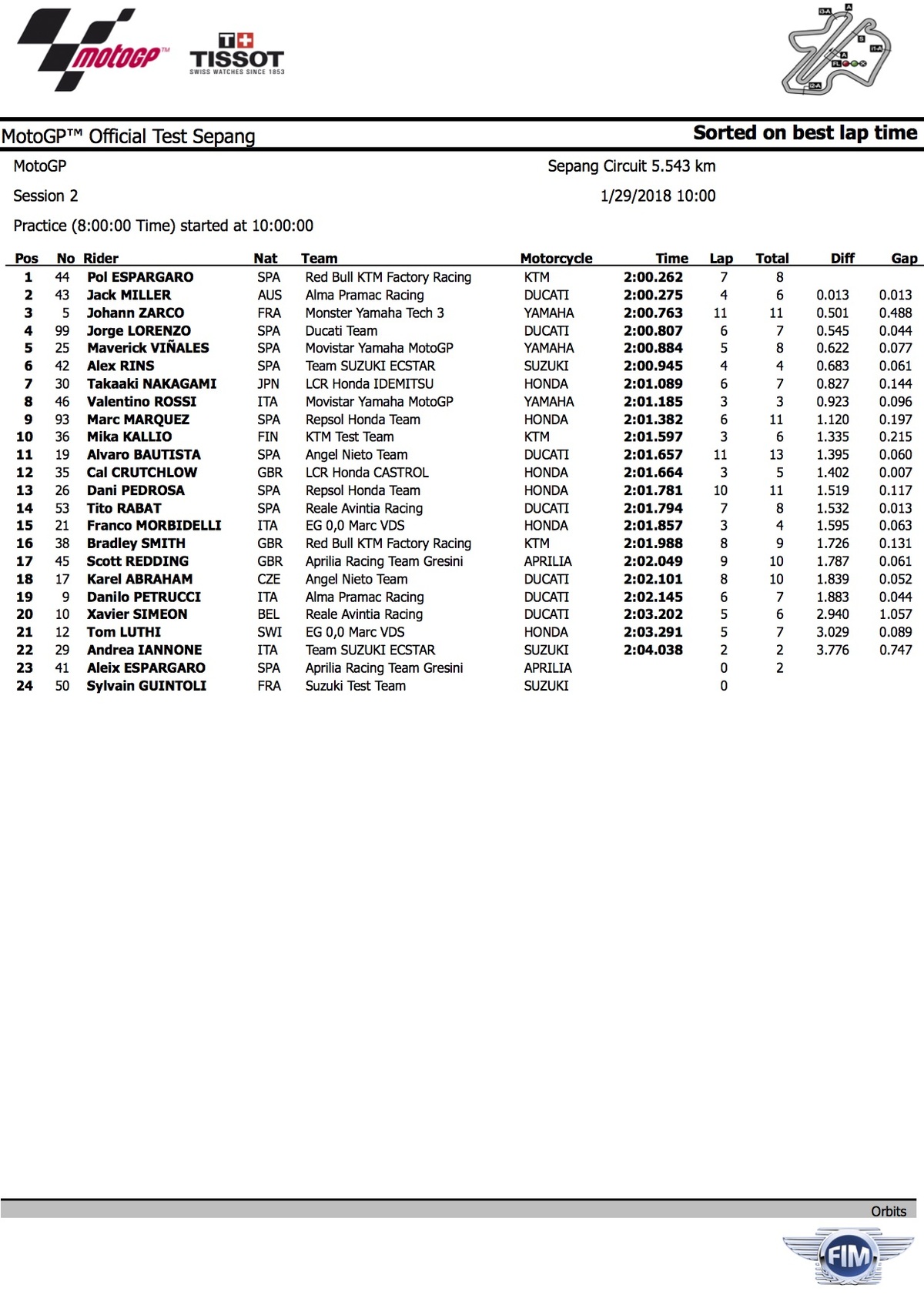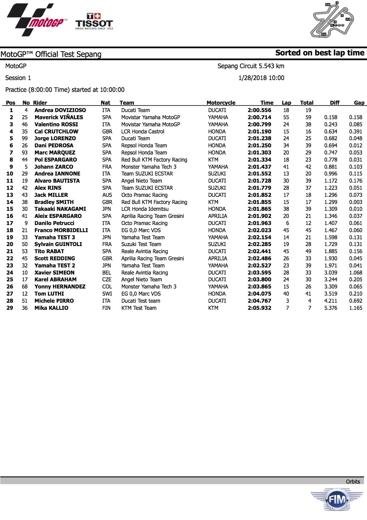 Al momento, ogni considerazione è inutile: si è girato troppo poco con la pista in buone condizioni. Solo un paio di appunti, tutti da verificare: l’approccio di Mavericks Vinales sembra molto diverso da quello del 2017, meno istintivo, ma più ragionato; la Suzuki sembra ripartire da dove aveva finito nel 2016, quindi in crescita.