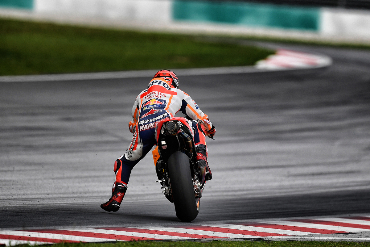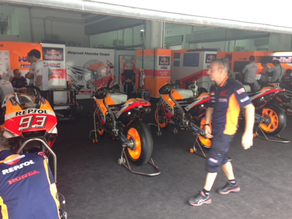 A Sepang non piove da questa mattina alle 9, eppure l’asfalto non è ancora completamente asciutto, anche se adesso si comincia a girare su tempi più veloci (Pedrosa è il più veloce in 2’01”826): inaccettabile. Non a caso, nei team c’è parecchio malumore: o si trova un rimedio, o non si verrà più a Sepang.