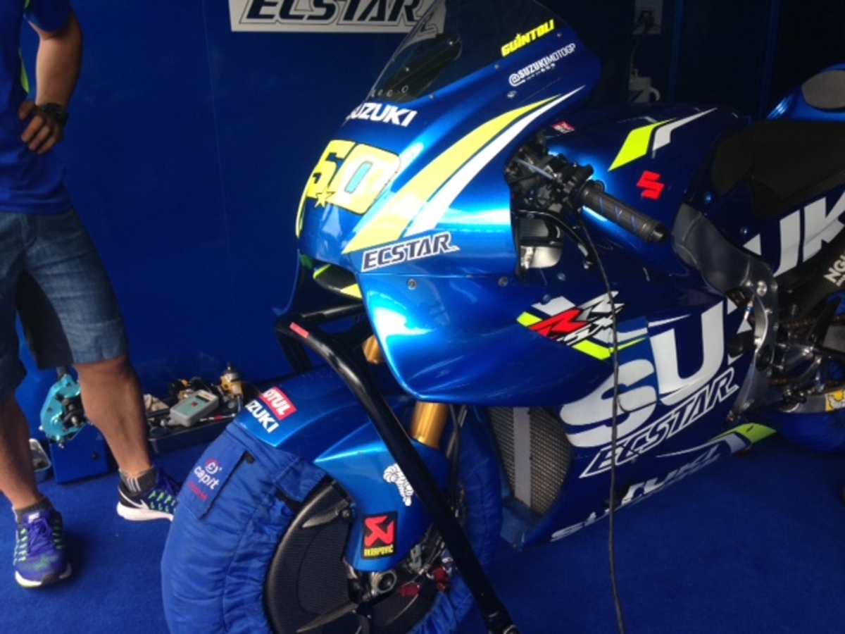 Ecco la carenatura della Suzuki del collaudatore Sylvain Giuntoli (queste alette sono montate anche sulla moto di Rins).