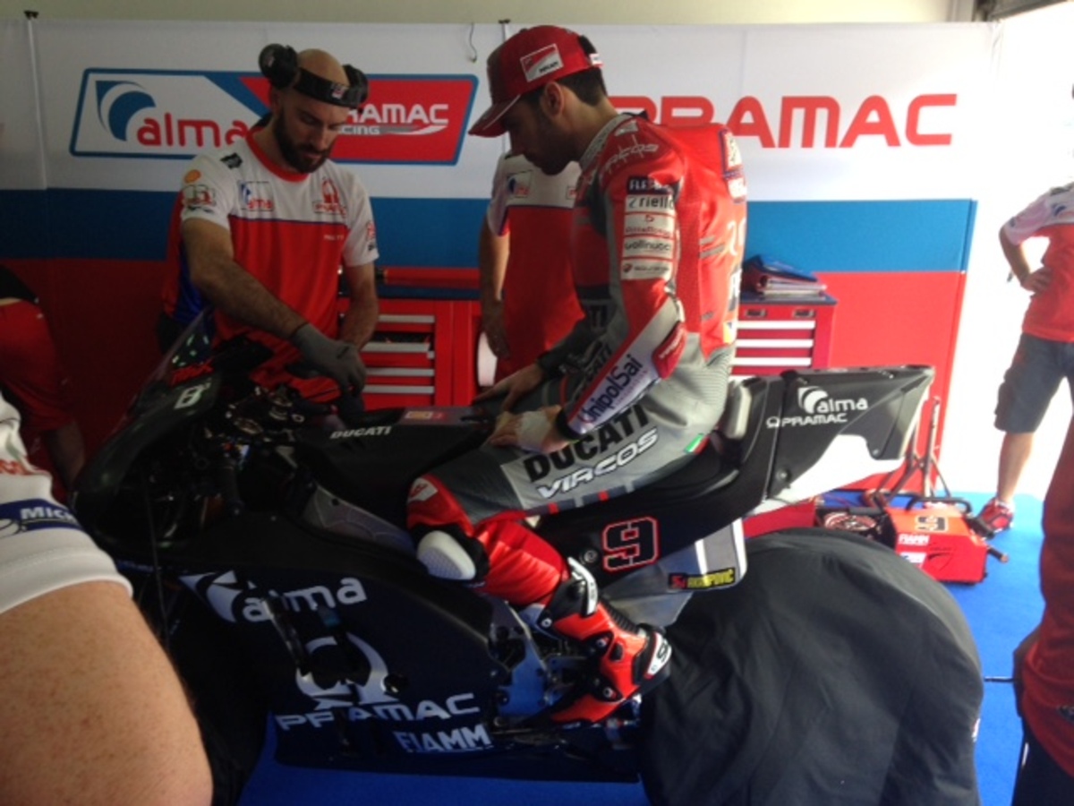 Michele Pirro fa qualche giro con la gp18 di Petrucci. In pista anche andrea dovizioso
