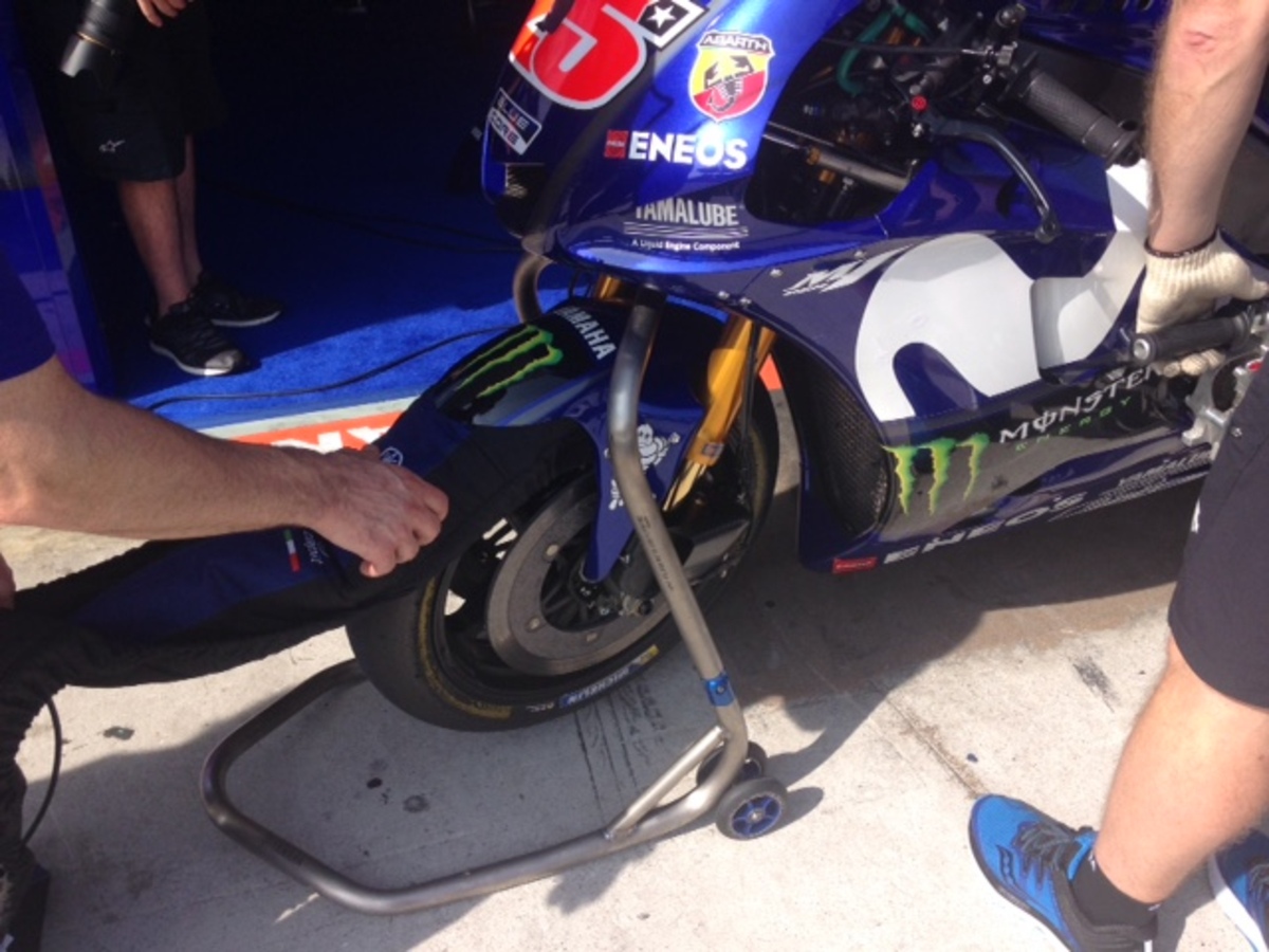 Per il momento, la giornata è stata utile solo per provare le gomme Michelin da bagnato, anche se le condizioni non erano esattamente ottimali per questo tipo di test. La gomma è asimmetrica, con due mescole poste in tre punti differenti