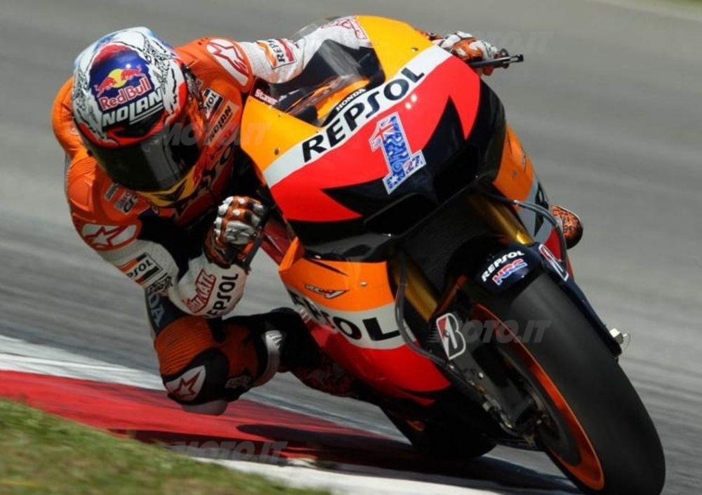 SEPANG - Casey Stoner è sempre il più veloce, Dani Pedrosa si avvicina, Jorge Lorenzo è come al solito costante, Valentino Rossi è ottavo a 1”484: questo il verdetto della prima delle tre giornate di prove in Malesia, pesantemente disturbata dalla pioggia.