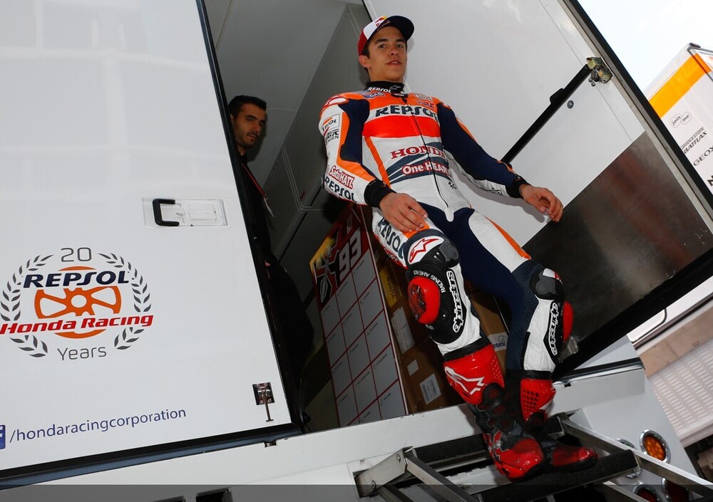 I piloti del team Repsol Honda hanno ottenuto la prima e la terza posizione rispettivamente con Marc Marquez e Dani Pedrosa; il campione del mondo in carica, dopo aver girato in mattinata con l’attuale versione 2014, nel pomeriggio in sella al prototipo 2015 ha stabilito il crono 1’55”411, piú veloce della pole position di sabato. Il vincitore di Brno si è invece concentrato su diverse componenti della moto 2014, dando un piccolo assaggio al nuovo prototipo, che giá aveva provato sempre su questo tracciato dopo il GP di Germania.