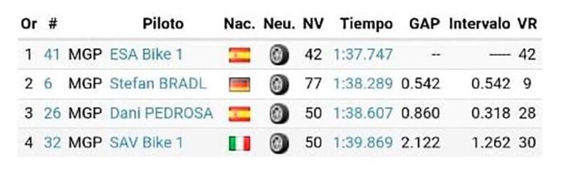 Per lui un tempo di 1,39,869, decisamente alto se si considerano gli oltre due secondi di distacco dal compagno di squadra Aleix Espargarò, più di un secondo e mezzo da Bradl e oltre un secondo da Dani Pedrosa, che in questi giorni sta lavorando molto in sella alla KTM.
