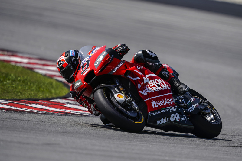 SEPANG – Quattro Ducati ai primi quattro posti, tutti sotto il precedente giro veloce (di Jorge Lorenzo): Danilo Petrucci, Pecco Bagnaia, Jack Miller e Andrea Dovizioso. Quinto Maverick Viñales, ottavo Franco Morbidelli, decimo Valentino Rossi, 11° Marc Márquez, assente Andrea Iannone (stava male).