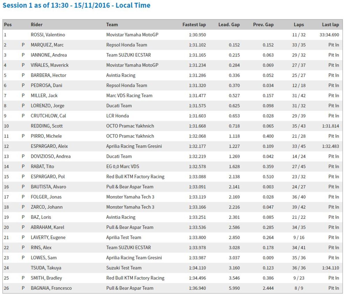 rossi terzo in 1’31”648 a 0”117 da pedrosa, iannone quinto in 1’32”207
