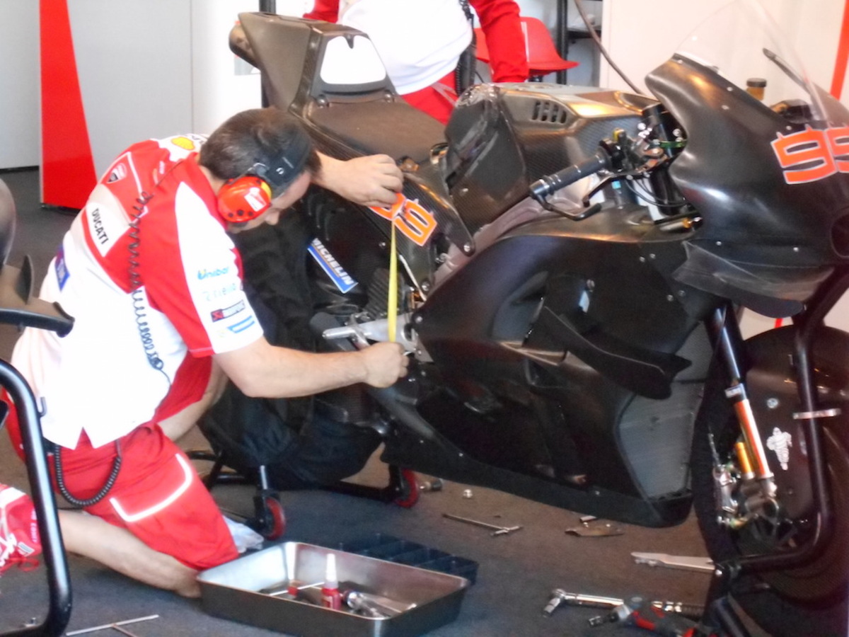 nel box ducati si sta preparando la DesmosediciGP 2017 (primo prototipo) per andrea dovizioso