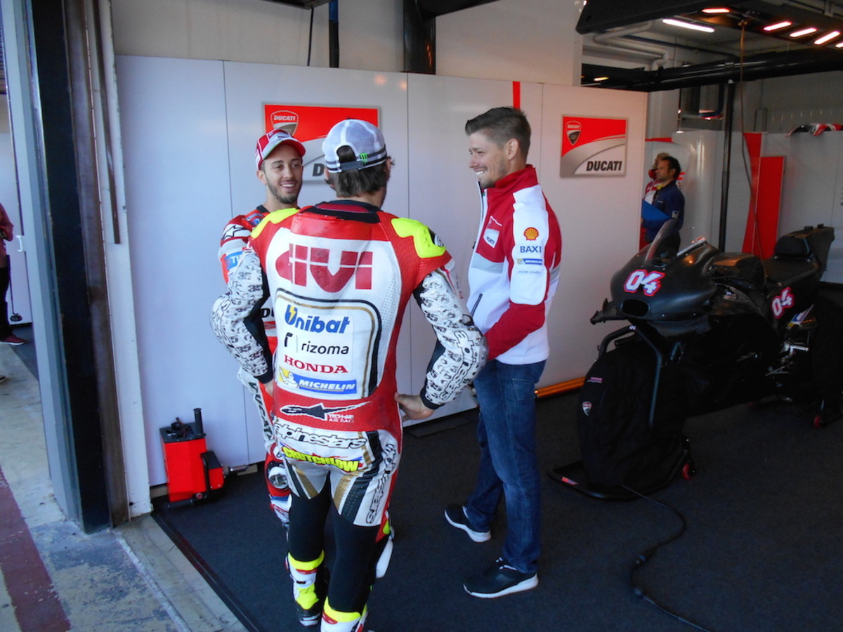 tardozzi, team manager ducati, ai microfoni sky: “ha cominciato a chiedere una posizione di guida leggermente differente, ha parlato della frenata, ma niente di che. non stiamo cercando i tempi, stiamo cercando di metterlo comodo sulla moto. lacrima vittoria è stato aver messo sulla moto un tre volte campione del mondo e vederlo scendere con il sorriso è stato sicuramente emozionante. dovizioso: stanno facendo dei “settari” differenti sulla p17, che è solo al primo prototipo”.