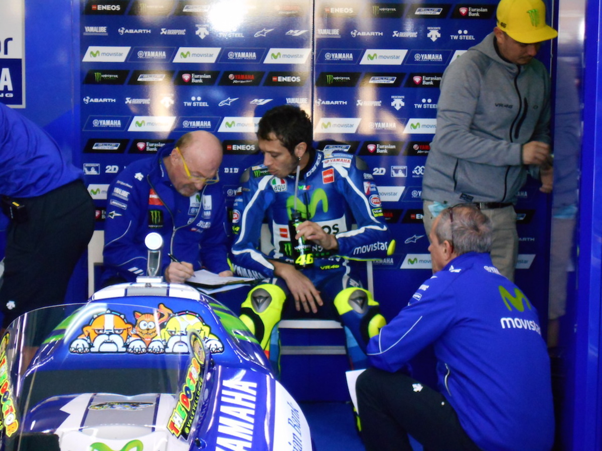 valentino rossi si sta cambiando, fra una ventina di minuti dovrebbe entrare in pista